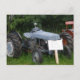 Una fotografía de primer plano de un viejo tractor vintage azul atareado con un cartel de venta hecho a mano apuntaba hacia el frente, con un toque de un tractor rojo a su lado. Ideal para los amantes de la granja.
