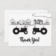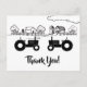 Esta tarjeta postal de agradecimiento en blanco y negro presenta dos tractores en silueta enamorados. Están situados en un encantador dibujo lineal de una granja rural.