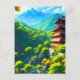 Arte tranquilo con un palacio chino rodeado de montañas y naturaleza.