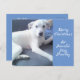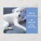 Postal Tranquilo Perro Blanco Corto Sentado Con Papá Azul