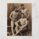Esta postal presenta una fotografía vintage de tres atractivos acróbatas de trapecio de circo muscular macho de principios del siglo XX.