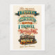 This is a postcard with the travel quote, "For my part, I travel not to go anywhere but to go. I travel for travel's sake. The great affair is to move" (Robert Louis Stevenson).