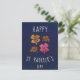 Tarjeta del día de San Patricio Trébol de la suerte rosa Feliz día de San Patricio. Tarjeta del día de San Patricio. Cuatro tréboles sobre fondo azul marino. Tréboles con cuatro hojas para la suerte.