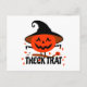 Celebra Halloween de manera espeluznante con esta obra de arte de la Trata de Calabaza con una calabaza super linda con un hacha de daga y un fantasma. La obra de arte lleva un gorra, añadiendo un aspecto de misterio a la figura fantasmal.