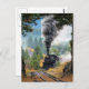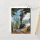 Locomotora número 19color imagen de un tren de vapor que se acerca en las vías del tren que arroja humo gris de su apilamiento, la pista está flanqueada por árboles de cada lado