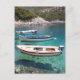 Tres barcos de pesca griegos flotando en aguas cristalinas