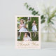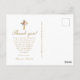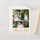 Esta bonita tarjeta de agradecimiento de Primera Comunión católica presenta un collage de tres fotos en la parte delantera con tipografía dorada sobre un fondo rosa, un dulce mensaje de agradecimiento editable está en la parte posterior y presenta una cruz rústica con un ramo floral boho acuarela y dirección de retorno. Esta tarjeta de agradecimiento de Primera Comunión es editable para una variedad de ocasiones religiosas cristianas, o para actualizar a su propio mensaje personal de agradecimiento.
