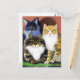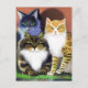Tarjeta postal en un retrato de tres gatos con actitud seria - estos tipos son serios - un Azul Ruso, un Persa marrón y blanco, y un atigrado naranja y blanco