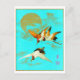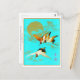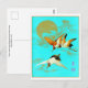 Postal Tres grullas de sari volando frente a la luna