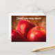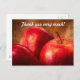 Vida fija de tres manzanas rojas parcialmente visibles contra fondo texturado. Postal. Tema del día de gracias. Puede cambiar o borrar el texto de la plantilla Muchas gracias!