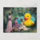 Una divertida pintura de estilo histórico de tres mujeres sentadas al lado del lago haciendo un picnic con un pato gigante en el parque AI generó arte