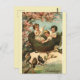 Esta postal presenta un ilustracion vintage de tres niños en un nido de Pascua. Debajo hay tres pájaros en una rama. ¡Disfruta mandando a tus amigos y familia esta temporada de Pascua esta tarjeta postal de tres niños de la época de la Pascua!