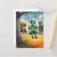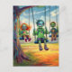 Este enérgico ilustracion de Halloween muestra a tres niños no muertos balancéandose alegremente bajo un cielo pintado de otoño. Con ojos rojos resplandecientes, gruñidos salvajes y atuendos coloridos, este diseño tremendamente adorable combina la inocencia infantil con el aire de horror — perfecto para espeluznantes coleccionistas de caracoles o arte.
