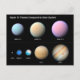 Ilustracion que representa a los tres planetas gigantes orbitando la estrella tipo Sol Kepler 51 en comparación con algunos de los planetas de nuestro sistema solar. Todos estos planetas son aproximadamente del tamaño de Júpiter, pero una fracción muy pequeña de su masa. Esto significa que los planetas tienen una densidad extraordinariamente baja, más parecida a la de la espuma de poliestireno que a la roca o el agua. Los planetas pueden haberse formado mucho más lejos de su estrella y haber emigrado hacia adentro. Ahora sus atmósferas infladas de hidrógeno/helio están sangrando en el espacio. Con el tiempo, se podrían dejar atrás planetas mucho más pequeños. Los colores de este ilustracion son imaginarios.