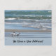 Una acuarela de tres farolillos comunes en una playa, con arena y olas al fondo, anuncia que tienes una nueva dirección en esta postal. La parte posterior se deja en blanco para que usted personalizar con sus datos.