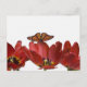 Postal Tres tulipanes rojos y una mariposa monarca contra