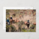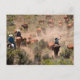 Postal Tres vaqueros y vaqueras que conducen ganado vacun