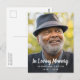 Tarjeta postal funeral personalizada con superposición blanca y espacio para una foto.