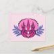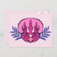 Esta postal de bonito está decorada con un retrato de triceratops rosa y morado flanqueado por hojas púrpuras abstractas.