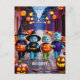 Disfrute de esta divertida escena de Halloween con un grupo de adorables "trucos" o "obsequiadores" de extranjeros llevando bolsas de caramelo, frente a un vibrante telón de fondo de brillantes lámparas jack-o' y cielos estrellados por la noche.