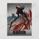 El diseño poster de propaganda de ciencia ficción que presenta el ilustracion de una máquina de guerra de trípode alienígena gigante.