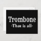 Un diseño divertido de eslogan de trombón en tinta blanca sobre fondo oscuro que dice "Trombón - Eso Es Todo".