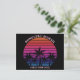 Cool beach vacation postcards for an island cruise or girl's bachelorette party to the coast. Features beautiful palm trees in front of a pretty pink beach sunset. Perfect custom keepsake postcards for your summer trip to the sea.