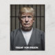 Trump encerrado tras las rejas con una tipografía de Trump For Prision con su uniforme gris de prisión