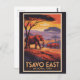 Tsavo East vector artwork design. Tsavo East National Park, one of Kenya’s largest and oldest parks, is famed for its vast savannas, red-dusted elephants, and spectacular wildlife sightings.
