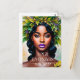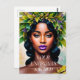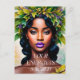 "Tu energía es sagrada" texto emparejado con retratos botánicos vibrantes de una hermosa mujer negra con un pintalabios morado y una corona de hojas inspirada en la naturaleza sobre su cabeza. Arte original de belleza melanina.