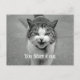 Fotografía de un gato blanco y negro gruñendo con texto de personalizable impreso debajo, "Lo averiguas".