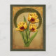 Un fondo marrón marrón con tres tulipanes rojos y amarillos. Personalizar este diseño para cualquier ocasión, como cumpleaños, aniversarios, un saludo de primavera o más!