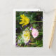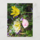 Postal Tulipanes blancos, rosas y amarillos en el jardín