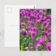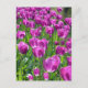 Un lecho de tulipanes de bonito violeta con sombras de sol en los pétalos que acogen el muelle. Mancha en el fondo.