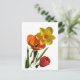 Postal Tulipanes rojos y flores daffodiales amarillas