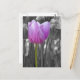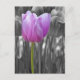 Un hermoso tulipán en flor sobre un fondo blanco y negro.