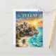 Tulum es un pueblo costero popular en la península de Yucatán en México, famoso por sus perfectamente preservadas antiguas murallas y templos de la ciudad maya situados en un dramático acantilado con vistas al Mar Caribe. Las ruinas de Tulum son uno de los sitios arqueológicos más impresionantes del mundo, que combina la historia con una impresionante belleza natural. El sitio cuenta con un castillo principal, El Castillo, que una vez sirvió como atalaya y centro ceremonial.