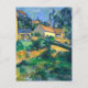 Postal con el bonito cuadro de arte del artista Post-impresionista francés Paul Cézanne (1839-1906), Turning Road at Montgeroult (1898). Un cuadro que representa un paisaje exuberante en una colina con casas en un pequeño pueblo francés.