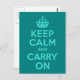 Postal Turquesa y Verde azulada mantener la calma y conti