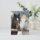 A sweet postcard to keep in touch with friends and family with an illustration of two horses on a snowy winter ranch with a full moon in back of them.