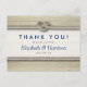 Estas postales de agradecimiento son perfectas para cualquier pareja que planee un matrimonio romántico junto al mar. El diseño se basa en una cuerda de barco náutico atada con un nudo en forma de corazón sobre un fondo rústico de marisco a la deriva. El diseño sencillo puede ser personalizado para adaptarse a su evento especial y será el agradecimiento perfecto para cualquier fiesta con temática playera, incluyendo duchas de novias, compromisos, duchas de bodas, fiestas de cumpleaños y mucho, mucho más.