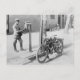 Esto es una fotografía del vintage de un cartero de los E.E.U.U. con su motocicleta que recoge el correo de una caja postal. La marca en su motocicleta es el Merkel que vuela.