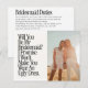 Bridesmaid proposal card features the quote I promise I won’t make you wear an ugly dress. Card in retro 90s editorial style.