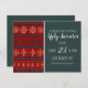 This festive invitation design brings classic holiday charm with a bold red knit pattern on the left and a modern deep green text panel on the right. Snowflake and tree knit motifs create a cozy sweater vibe, while elegant white lettering highlights the party details. Perfect for hosting a fun and cheerful ugly sweater gathering, this invitation sets the tone for a warm and spirited holiday celebration.