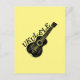 Dibujo negro con texto personalizado. Postales del personalizado ukulele con fondo amarillo. Diseño original. Una idea de regalo para los amantes de la ukulele.