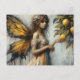 Un adorable hada escogiendo limones de un arte de fantasía de árbol