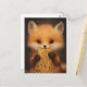 Postal Un adorable zorro rojo bebé comiendo espagueti