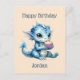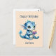 Postal Un bebé dragón azul lindo comiendo un pastel