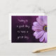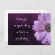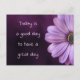 Una foto de cierre de una flor morada y una cita inspiradora "Hoy es un buen día para tener un gran día"