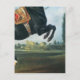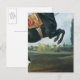 Postal Un caballo negro representando el Courbette